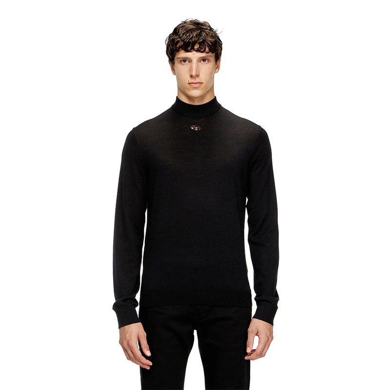 Men's black turtleneck sweater crafted from responsibly sourced wool. This piece is knitted in a slim profile and detailed with a cut-out and embroidered Oval D logo on the chest.
