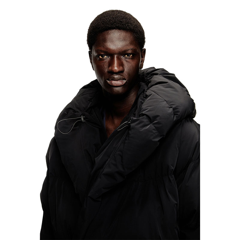 More than your ordinary puffer, this men's FW25 Runway Show jacket shakes up the cold-weather classic with a loose shape that engulfs the body like a shawl. Padded to the extreme, it's made from technical nylon, engineered to stretch in two directions for serious flexibility. Toggle adjusters temper the hood to keep the chill firmly out.