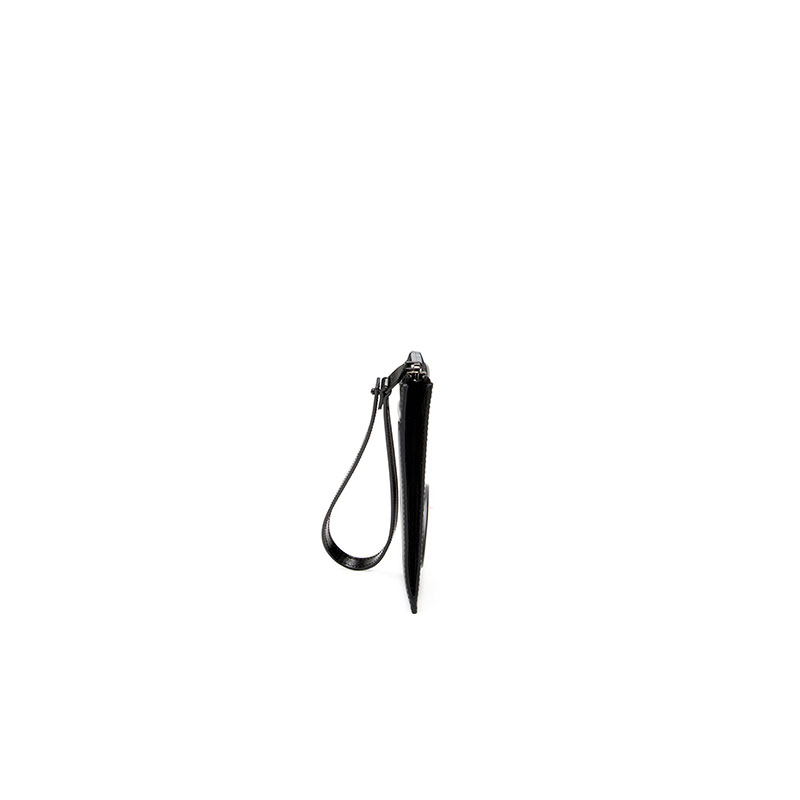This women’s zipped pouch has a wristlet for easy carrying. Gleaming on one side with a mirror-like shine, it’s crafted from responsibly sourced leather and adorned with equally shiny metal Oval D hardware. The shape is slim yet accessible thanks to the gusset on one side.