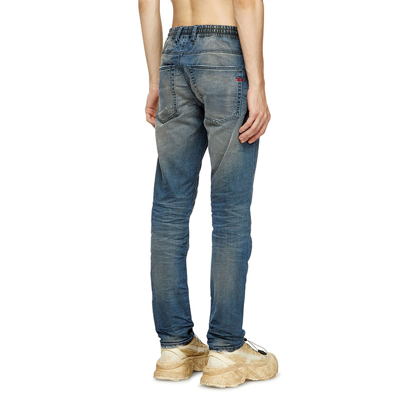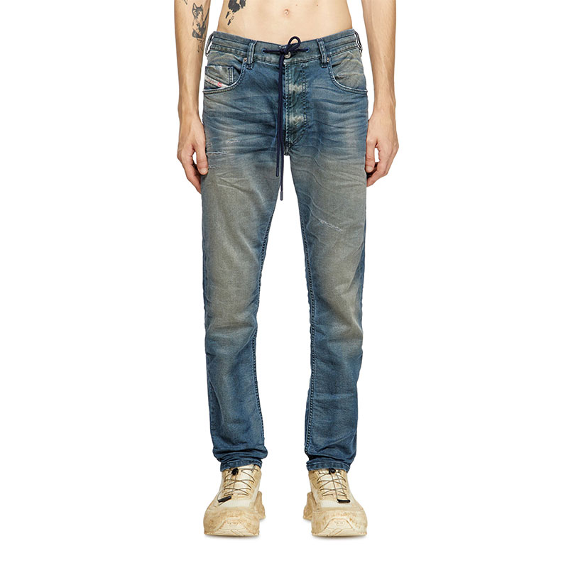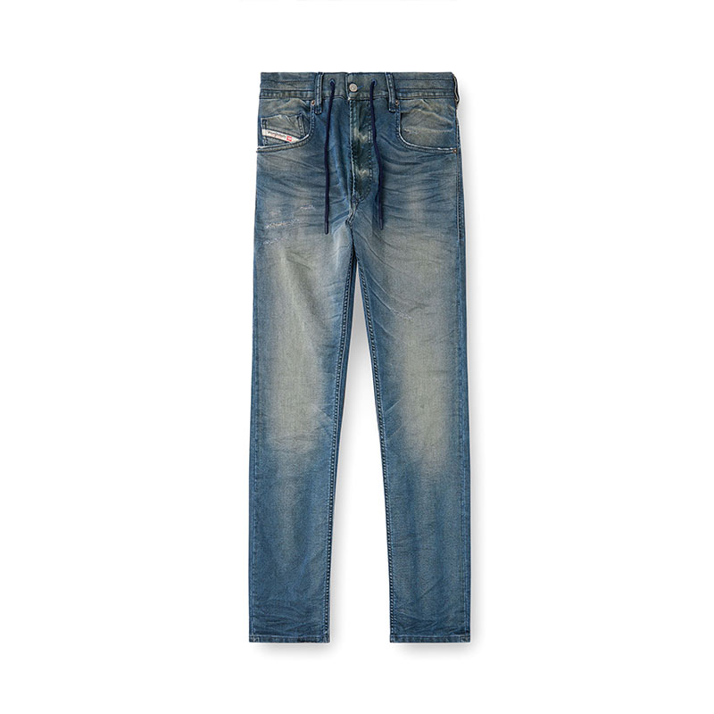 The dark blue wash has a lived-in look, with whiskers, abrasions and a soft dirt finish – a signature DNA look.