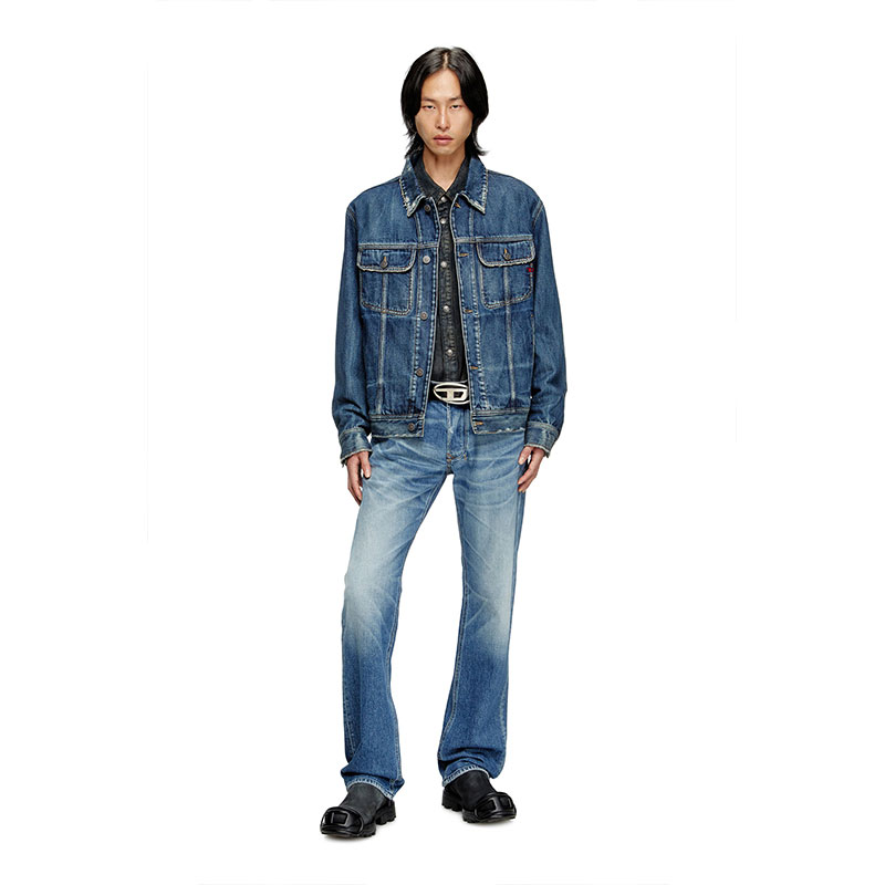 It's made from comfort denim with a medium blue wash in partially recycled cotton, with whiskers and used effects. The authentic look of this comfort denim makes it a DNA piece.
