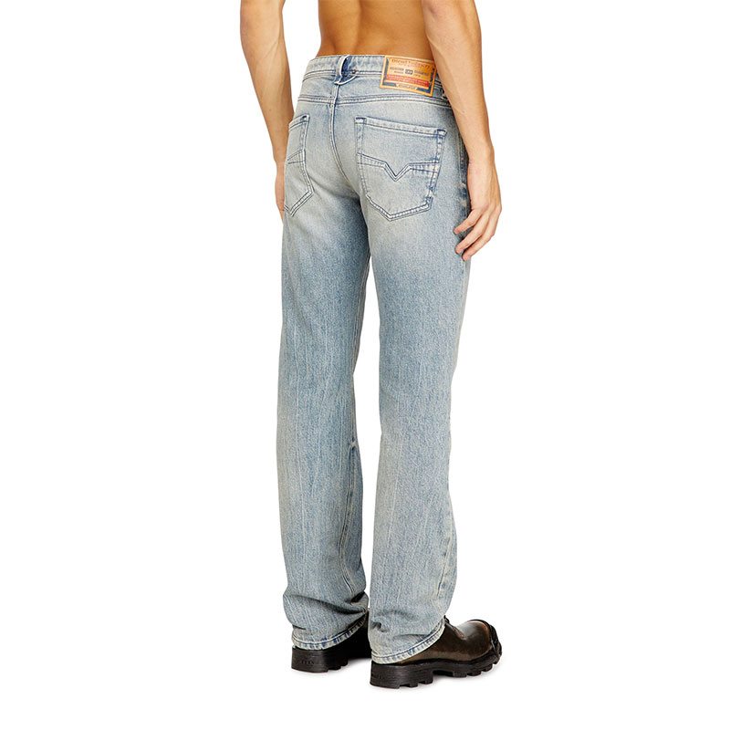 Expertly treated for a worn-in aesthetic that's integral to Diesel's DNA, this light blue wash combines multiple artisanal techniques. Manually sanded whiskers and dirt effects lend depth, while binding and brushwork create artistic streaks along the leg that are unique to each piece. Made from comfort denim with a percentage of recycled cotton.