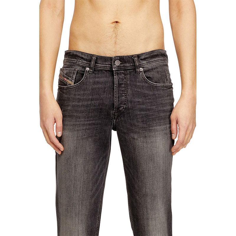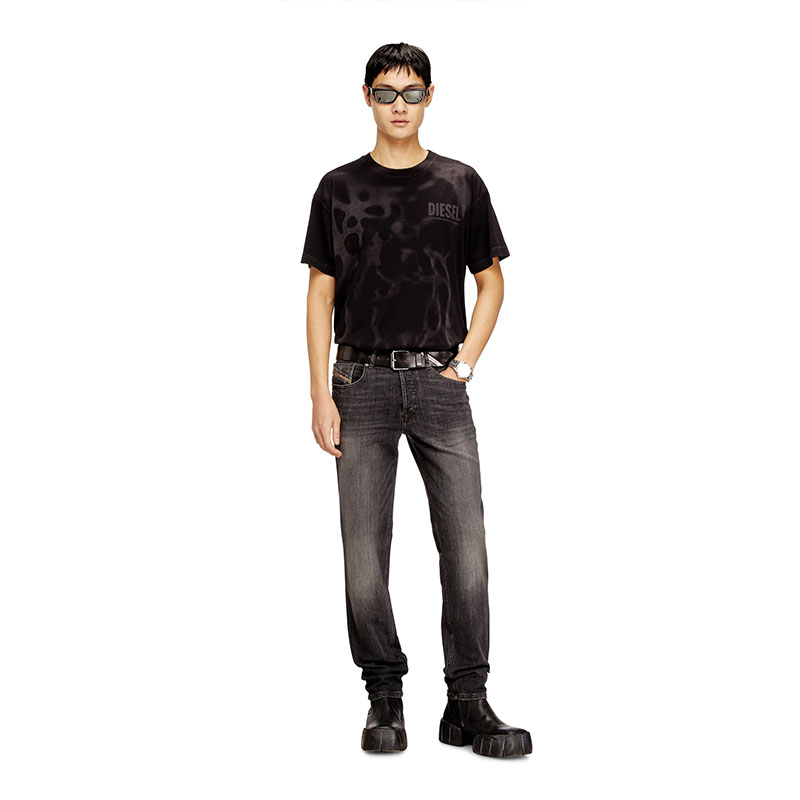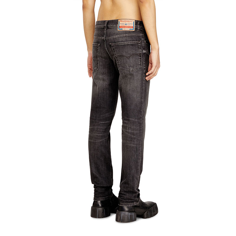 The black wash is crafted from comfort denim. The organic cotton fibre is blended with a touch of elastane for a slightly stretchy fit. The lived-in look is achieved through manually-sanded whiskers and all-over shaded effects, enriched with tiny abrasions for added texture.