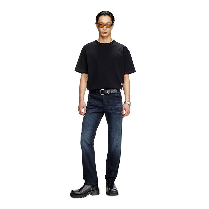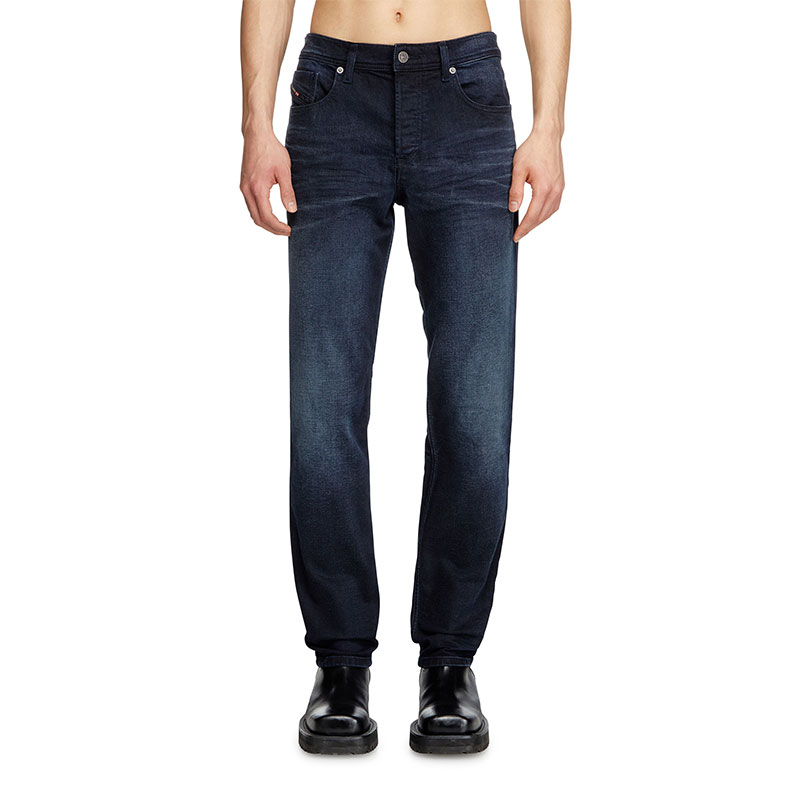 This recycled-cotton comfort denim showcases a deep, dark blue wash that's very subtly treated for an essential, DNA look.
