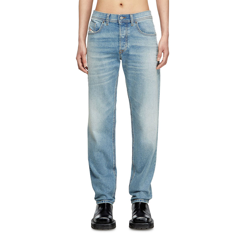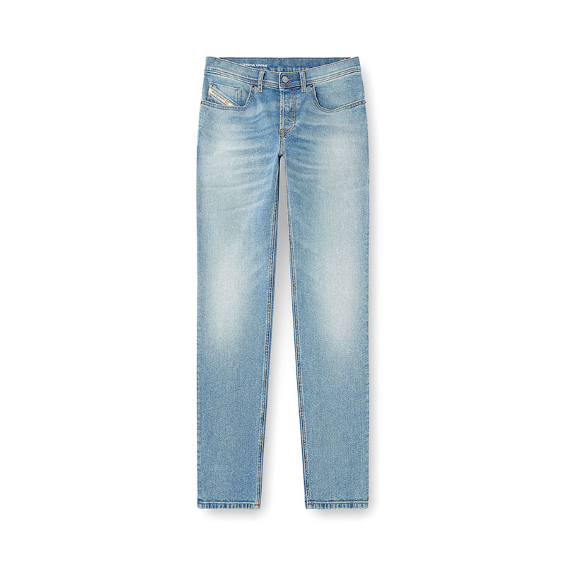 The comfort denim fabric is crafted using partially recycled cotton, and features a light blue wash with subtle treatments that channels an authentic, lived-in look. It's part of Diesel's DNA selection of essential and iconic washes.