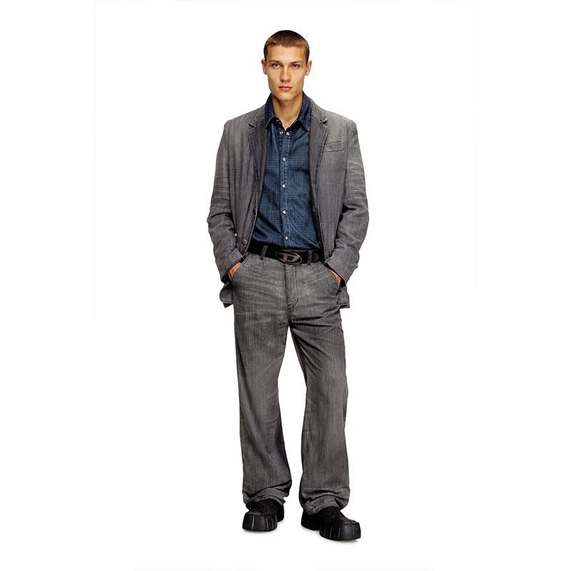Made from a blend of organic cotton and TENCELLyocell, this fix denim fabric is smooth and fluid. The grey wash combines a traditional Prince of Wales pattern with carefully designed whiskers where the garment naturally folds when worn. A final spray technique intensifies the tonal contrasts.