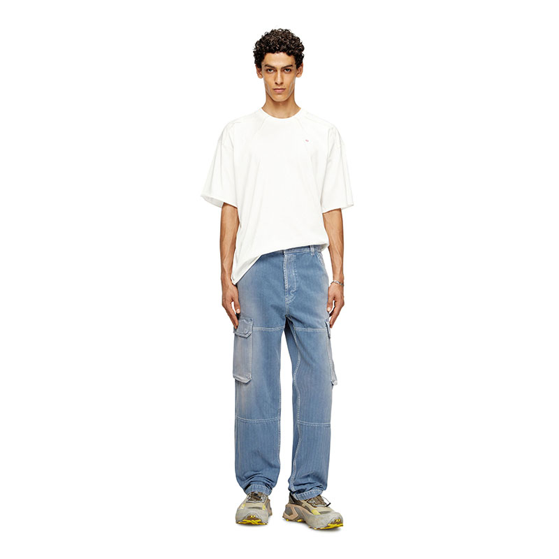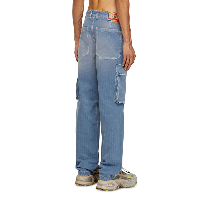 Designed to lend an edgy twist to everyday "uniform" dressing, this fix denim stands out with a refined herringbone pattern in a soft indigo colour, creating a subtle pinstriped effect. This exclusive wash is part of Diesel's DNA selection, showcasing the brand's heritage and essential style codes. Available only in Diesel flagship stores and on diesel.com.