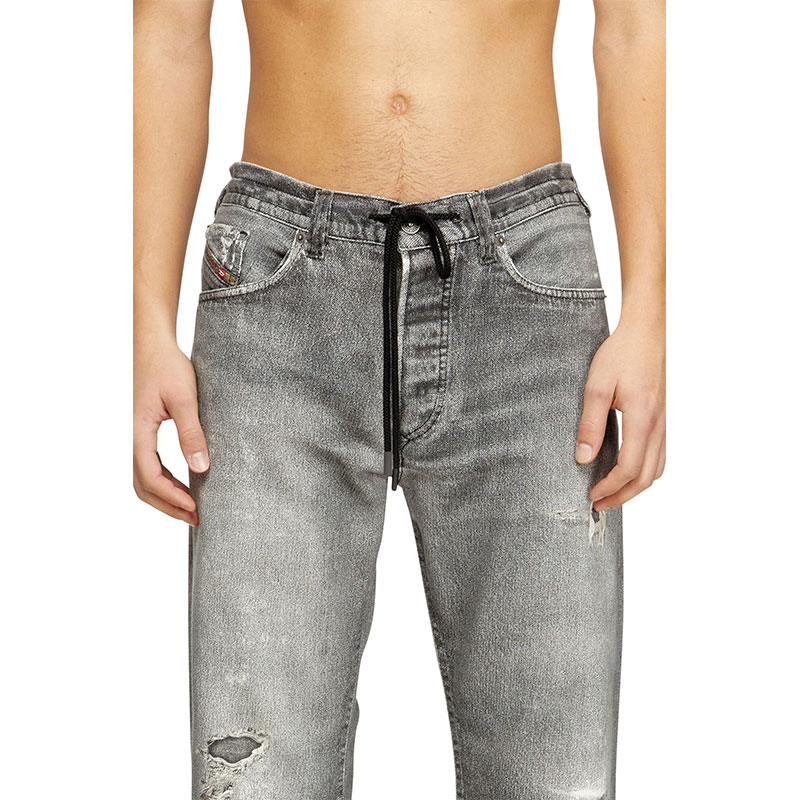 This DNA wash blends an innovative vision with authentic denim character. A digital graphic print replicates the abrasions and natural wear-and-tear of a lived-in jean, creating a trompe l’oeil effect in shades of grey.