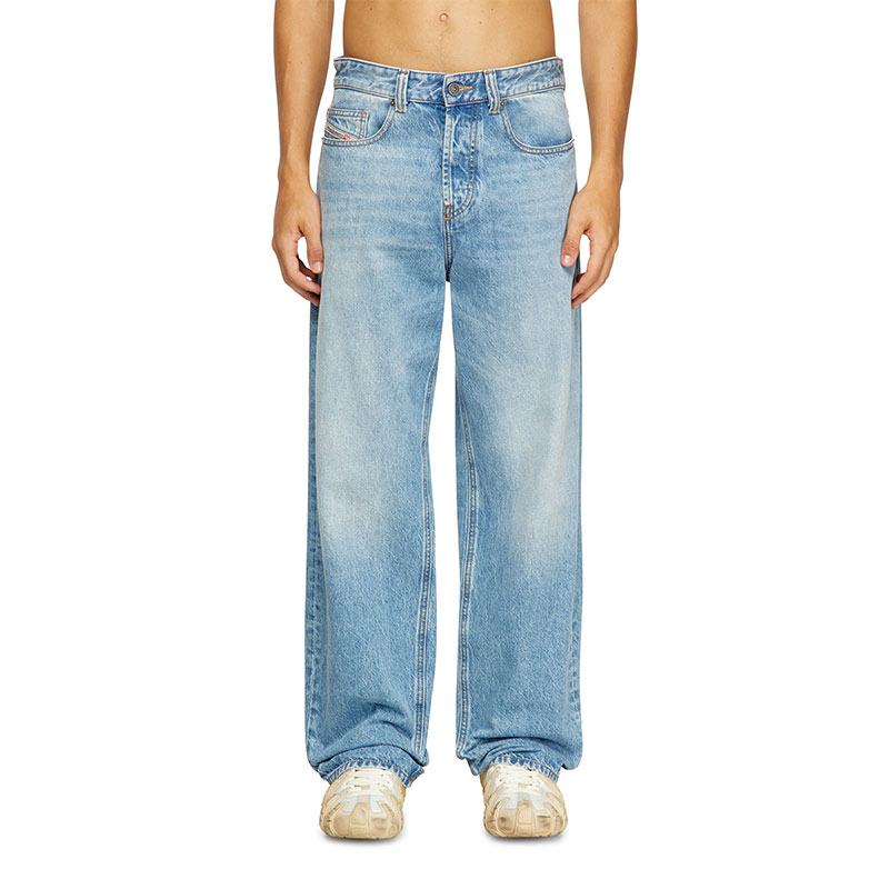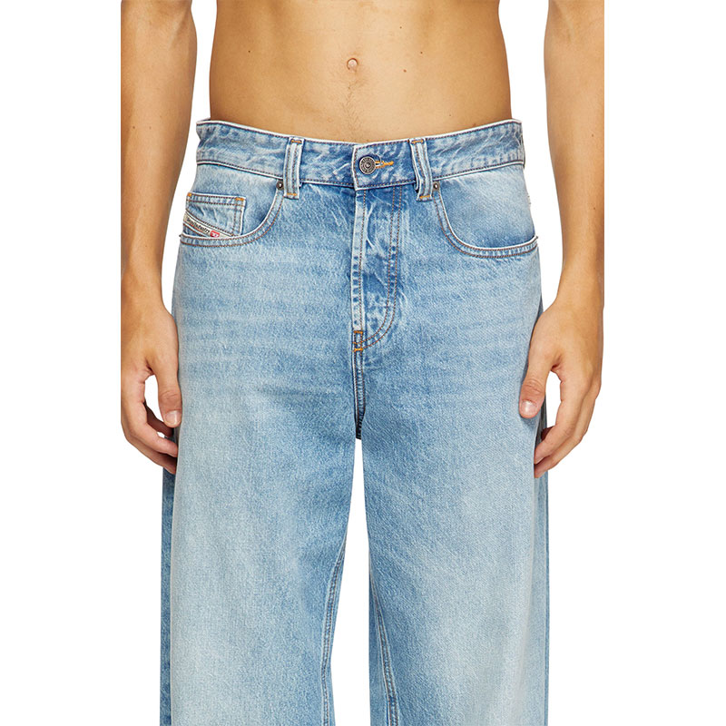 Relaxed fit with a low waist, low crotch, and wide leg. This longer, looser silhouette has room for swagger. Button fly.