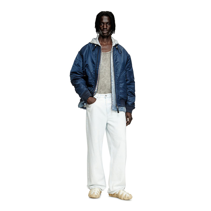 The garment is made from fix denim in organic cotton and TENCEL lyocell. The super bleached-effect ice blue wash delivers a clean, DNA-infused look.