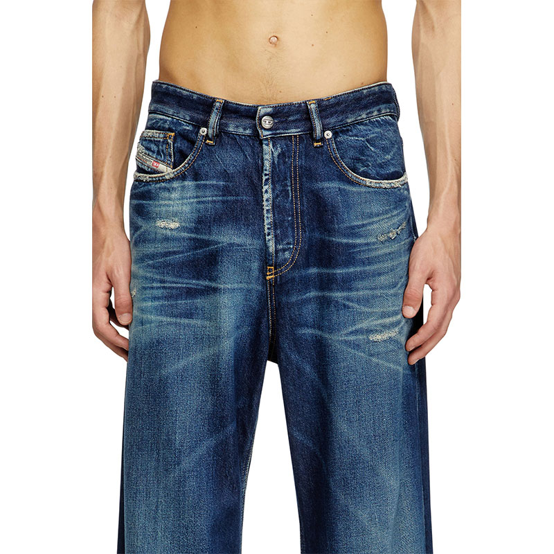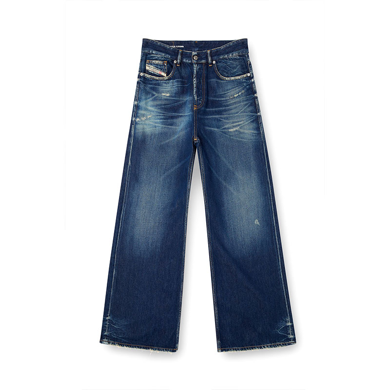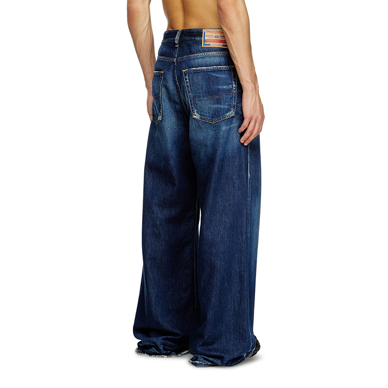 Made from organic cotton and TENCEL Lyocell, this dark blue fix denim has a fluid feel and a signature destroyed look. Whiskers and abrasions are mainly on the upper part of the garment, delivering a subtle yet distinctive DNA finish.