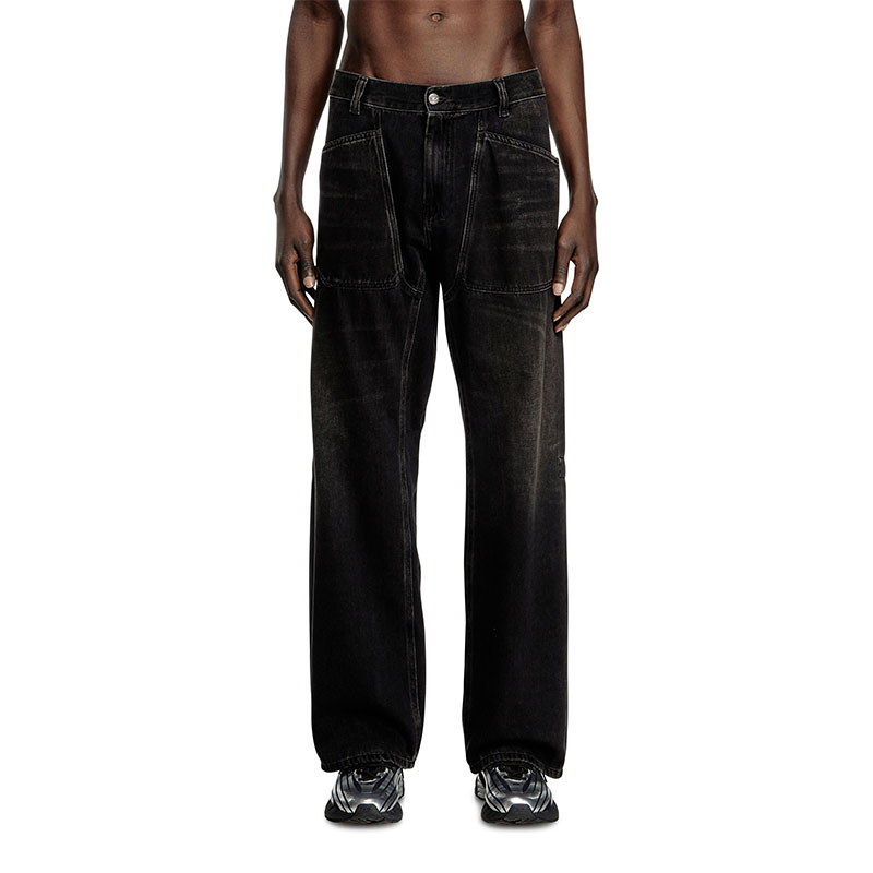 Relaxed fit with a low waist and regular leg. Borrowed from the Diesel archives, this style is defined by maxi utility pockets on the waistband.