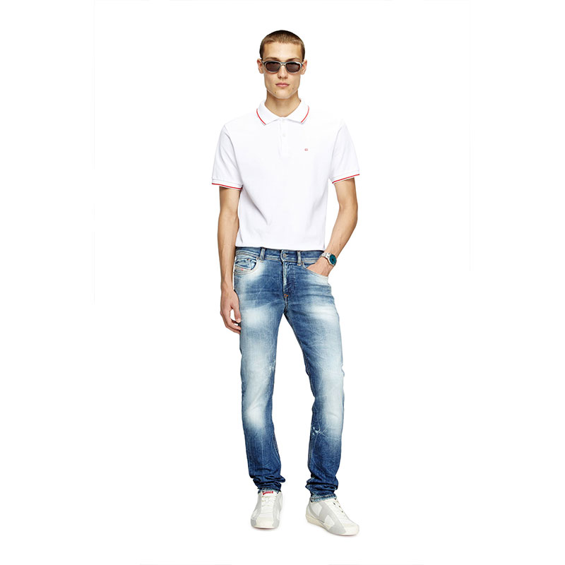 Skinny fit with a low waist and a long, narrow leg from thigh to ankle, cut for the perfect amount of bunching in the leg.