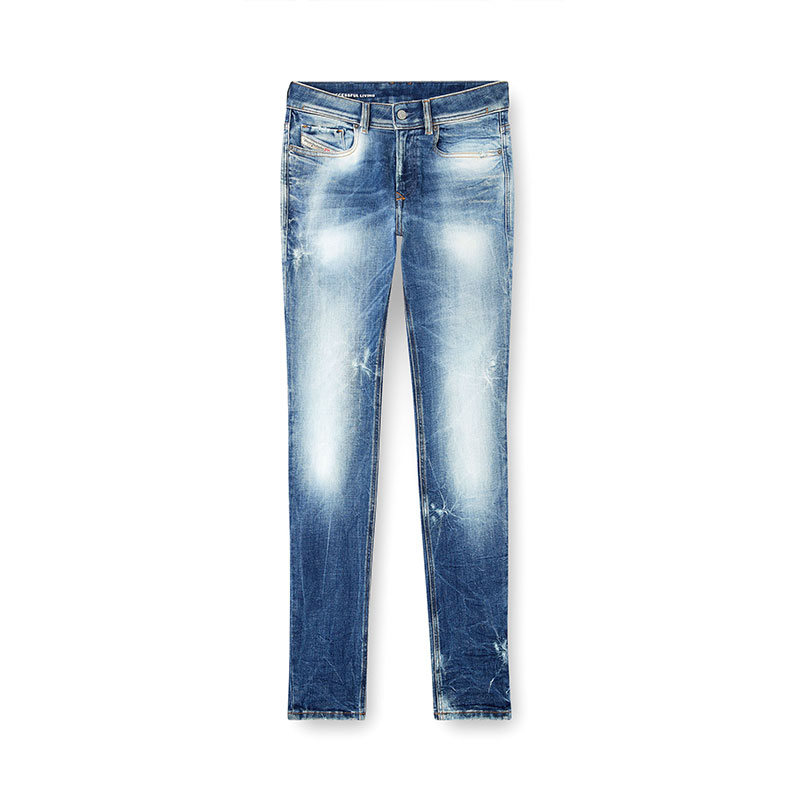 Made from organic-cotton stretch denim, this dark blue wash is Distressed in Italy, and showcases a signature DNA look. Exclusive treatments create the cloudy, bleach-effect contrasts, especially on the thigh.