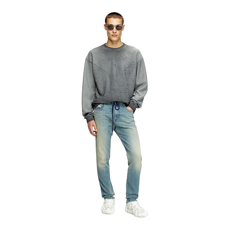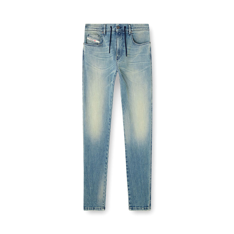 The DNA wash has a clean, light blue finish, detailed with whiskers and subtle abrasions on the pockets.