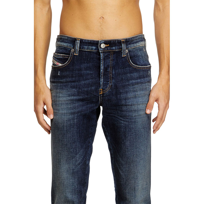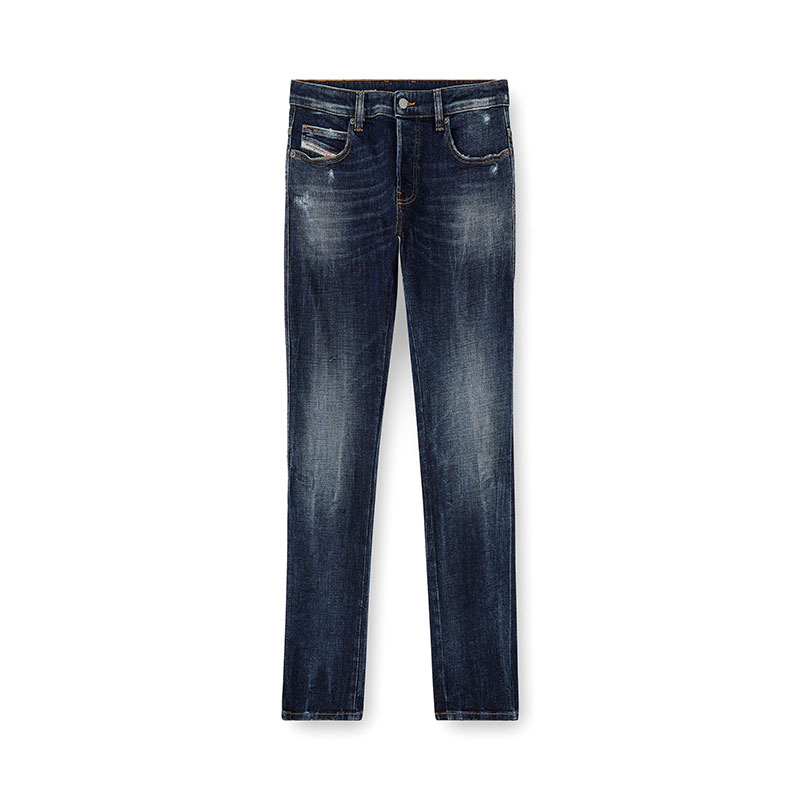 Part of Diesel's heritage and essential style codes, this DNA wash is crafted from dark blue comfort denim. The garment is detailed with small abrasions, contrasting whiskers and worn effects. Each treatment is carefully executed to enhance the denim texture.