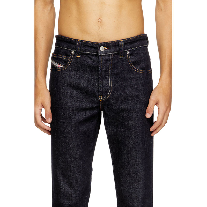 This comfort denim is made using 50% organic cotton. The dark blue rinse wash delivers a raw, DNA-infused look.