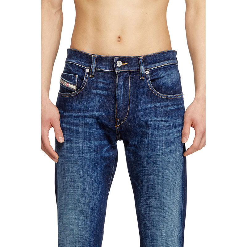 Made from comfort denim, this medium blue wash is subtly treated for an essential, lived-in look that's part of Diesel's DNA collection. It's made using partially recycled cotton with a hint of stretch.