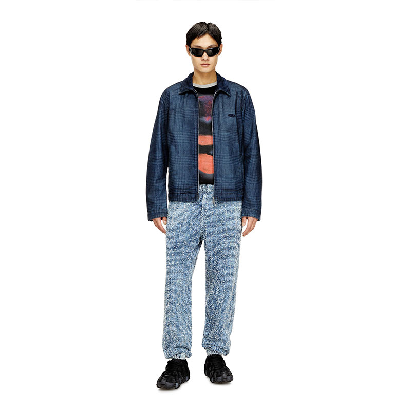Made from fix denim in organic cotton. The bouclé texture is crafted using an elaborate needlepunch technique, lending the fabric a uniquely distressed finish. Enriched with a Prince of Wales print, it's a perfect example of Diesel's alternative vision of classic tailoring staples.