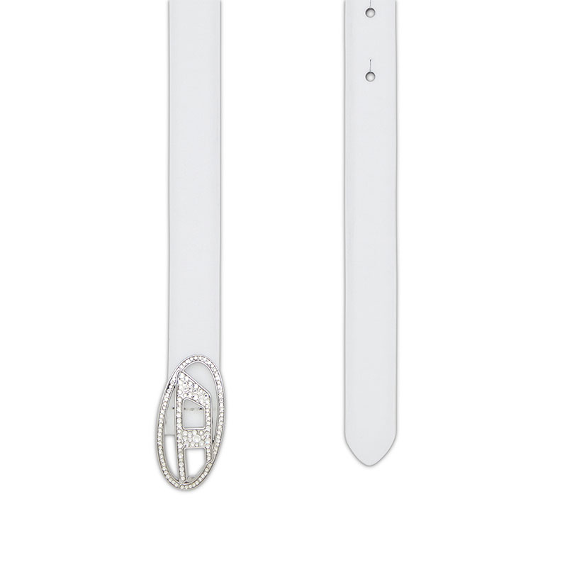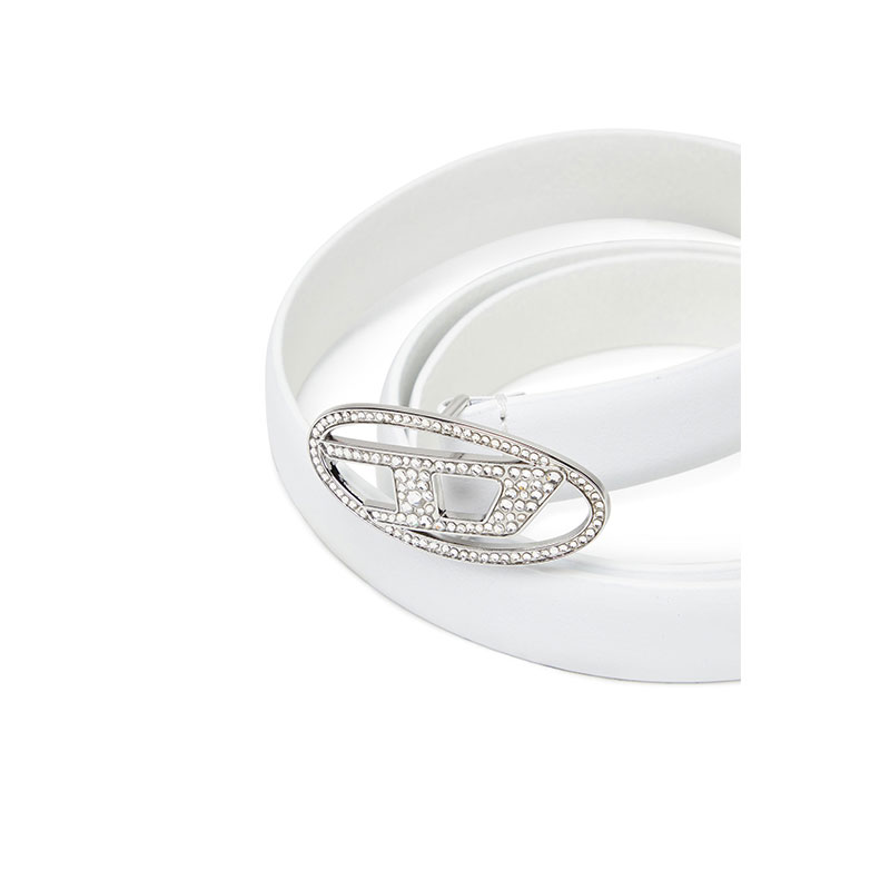 Diesel Women 1.9cm slim leather belt with crystal buckle White X09972P6364