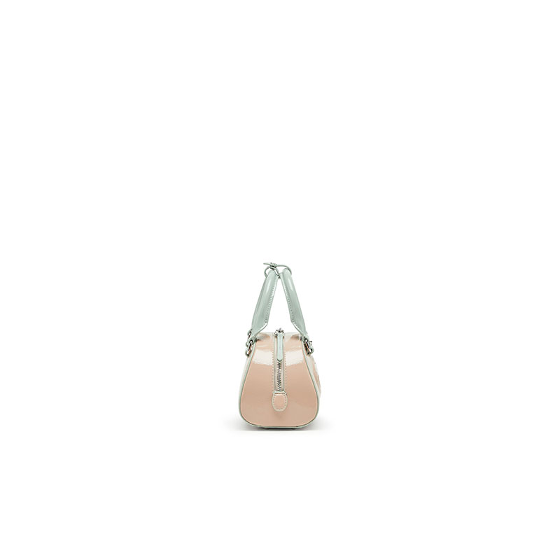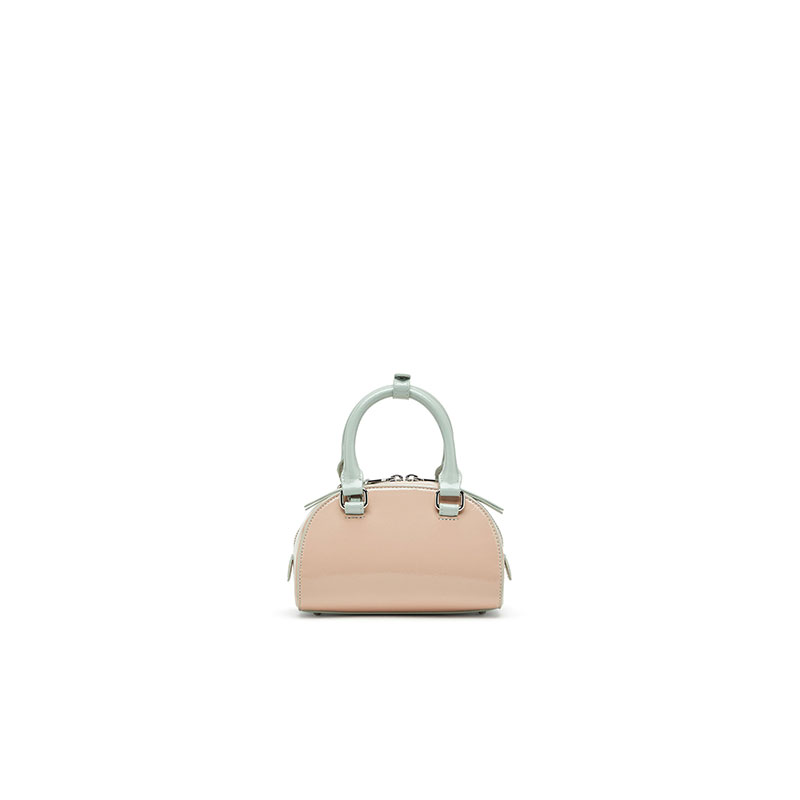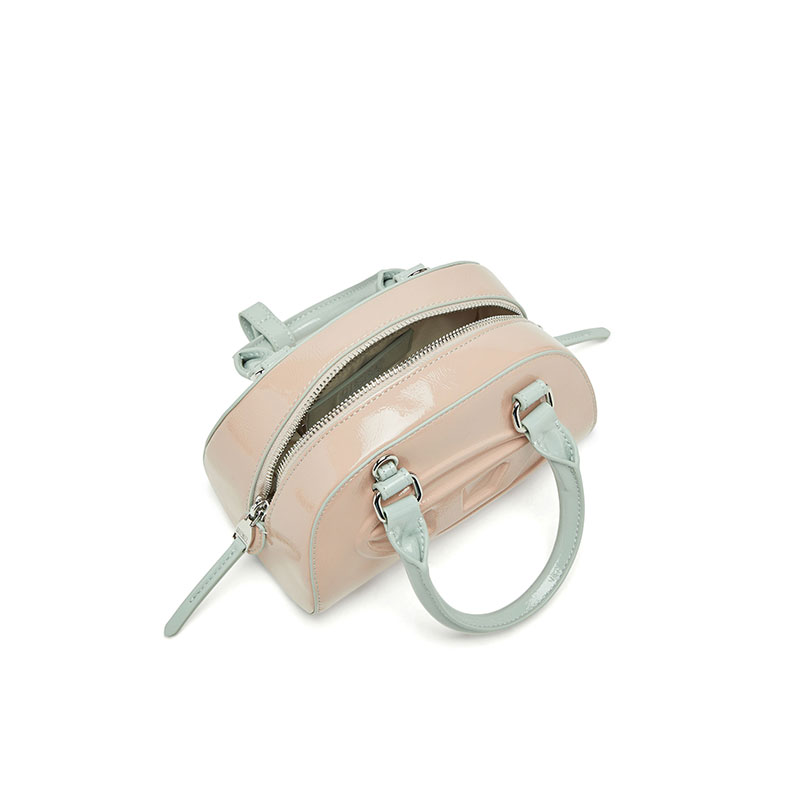 This women’s ‘Dome’ mini bowling bag is an evolution of the iconic 1DR. Designed in a curved, structured shape with a two-way zip fastening and metal feet, this sporty, colour-block iteration is crafted from PU with the distinctive wrinkled texture and high-shine finish of naplak leather. It has a detachable crossbody strap and a top handle secured with a snap-fastening loop. The Oval D logo, embossed using an innovative high-frequency technique, is a core element of the Diesel identity.