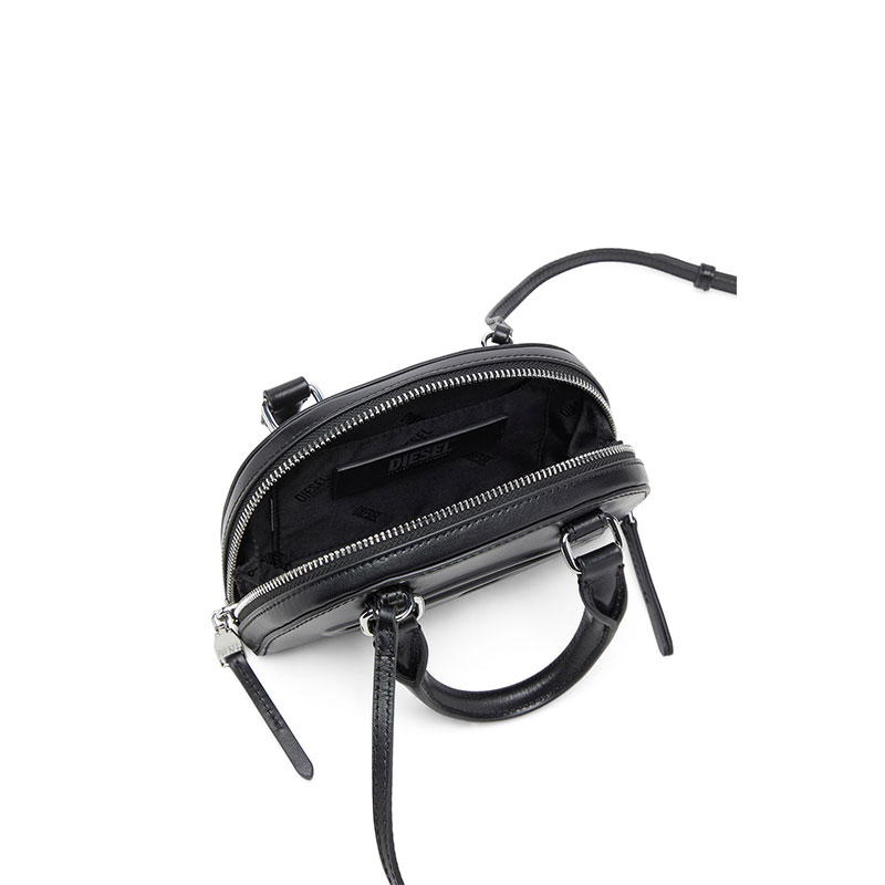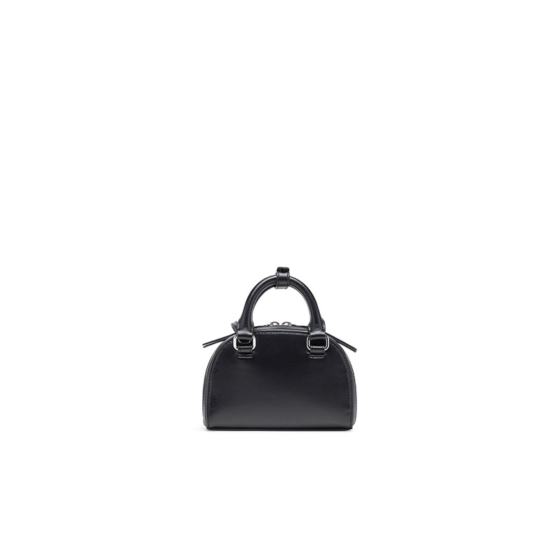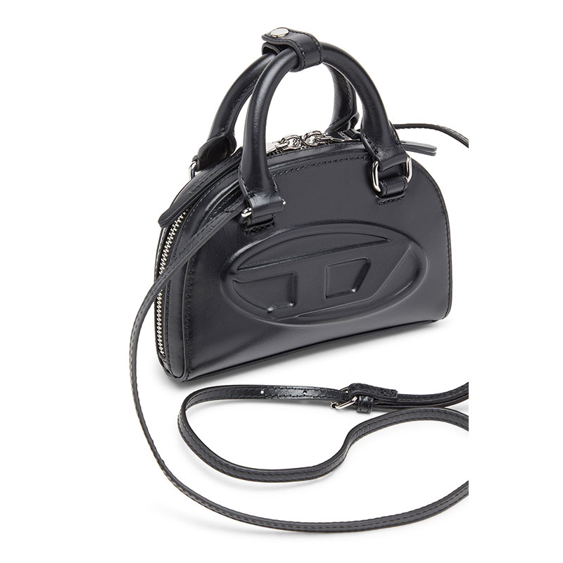This women’s mini crossbody is a slimmer yet fully functional version of the ‘Dome’ bowling bag evolved from the iconic 1DR. Featuring an adjustable strap and rolled top handles, it’s crafted from supple, responsibly sourced nappa leather in a curved shape with painted edges. The zipped compartment – roomy enough for your phone, card holder, keys and lipstick – opens wide, with side gussets keeping everything secure. The bag is finished with an embossed Oval D logo, front and bold.