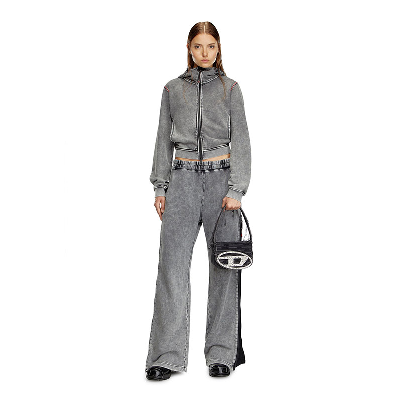 Synonymous with Diesel's irreverent DNA, this women’s 1DR bag looks destroyed yet precious. It's crafted from distressed quilted canvas with dangling frayed threads and leather details. The iconic Oval D hardware is a megawatt embellishment, bedecked with crystals of various tones and sizes. This top-handle bag fits neatly underarm and comes with a detachable crossbody strap.