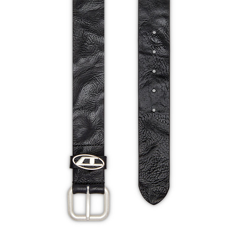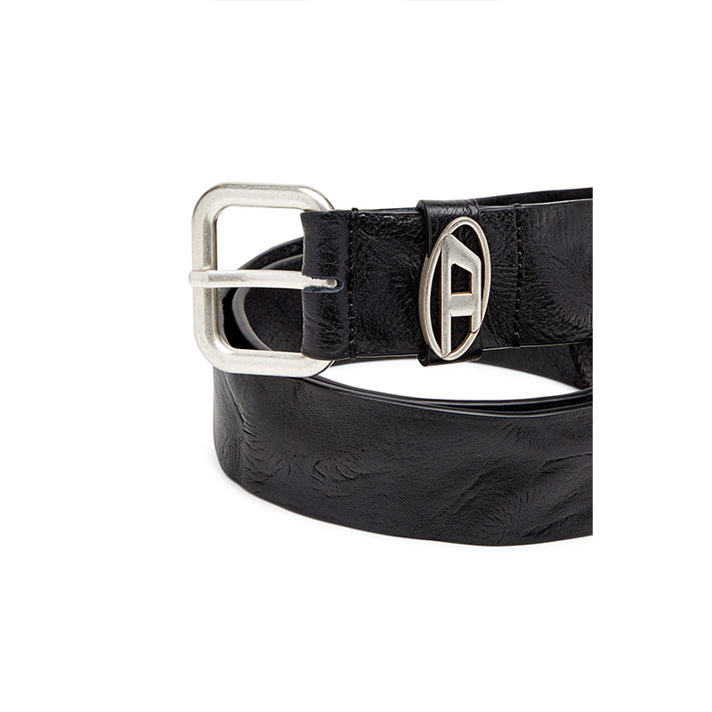 An all-gender design, this brown belt is crafted from soft leather with a tactile wrinkled finish, and fastens with a polished silver-tone buckle. Note the metal Oval D plaque embellishing the loop.