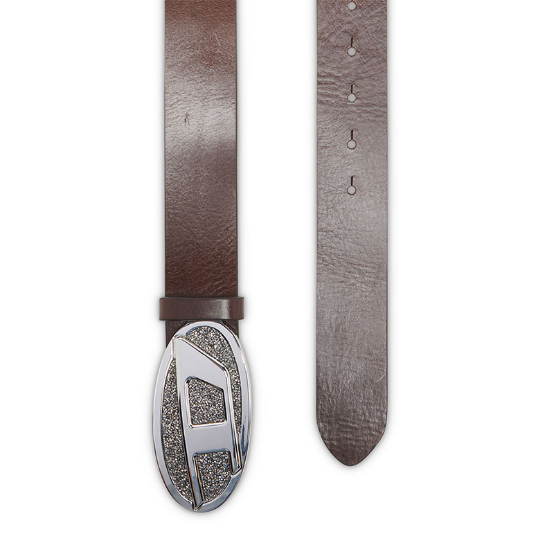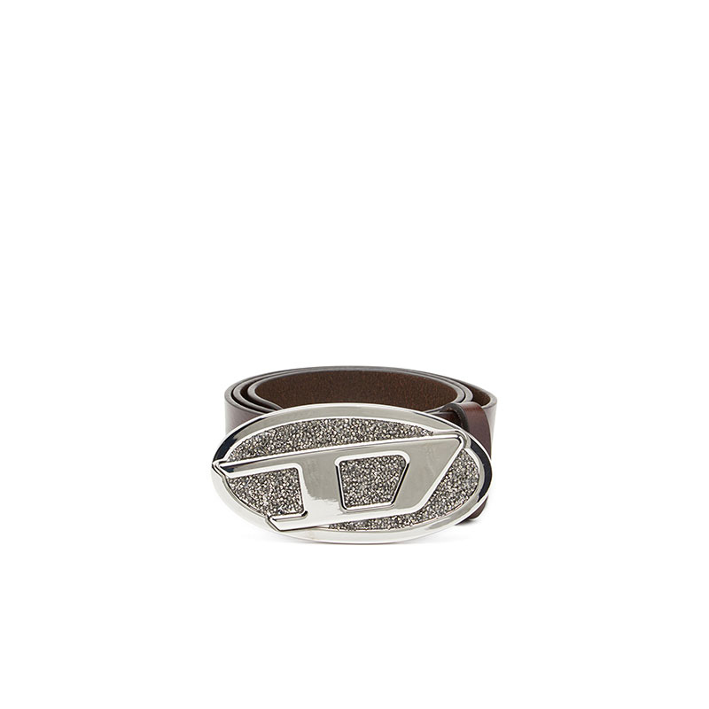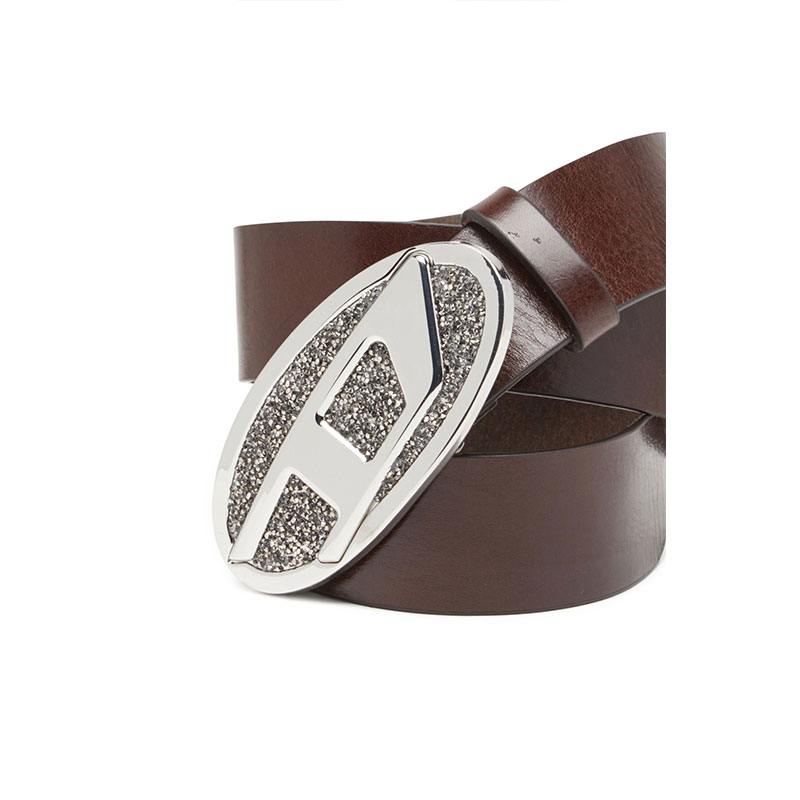 Diesel Women 4cm leather belt with rhinestone Oval D buckle Brown X10429PR666