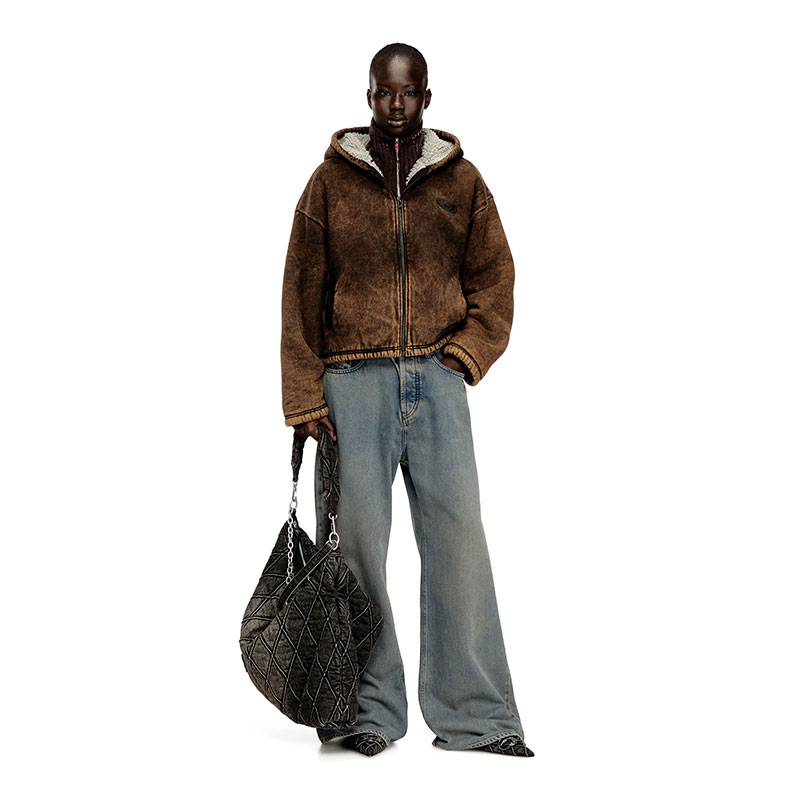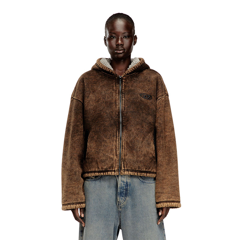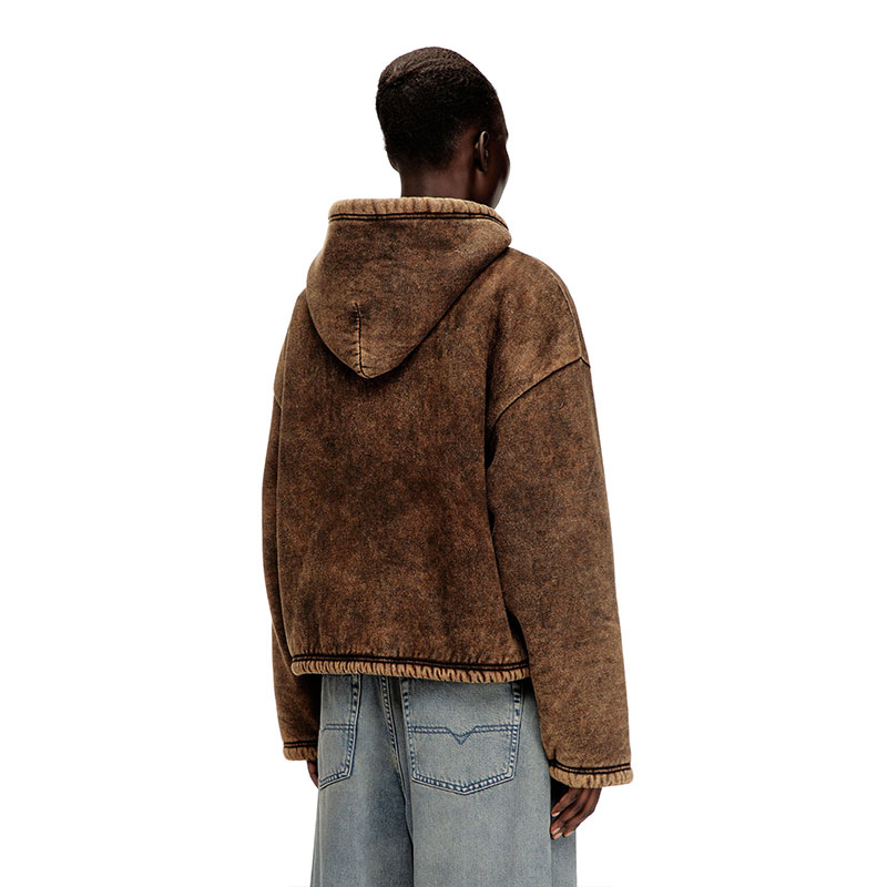 This women’s hoodie features a naturally worn-in acid wash finish, with subtle streaks and tonal variations created by a considered blend of yarns. A full zip, open pockets, and bungee cords at the hem shape the silhouette, hallmarked with Oval D embroidery on the chest. The teddy fleece lining adds cosy insulation.