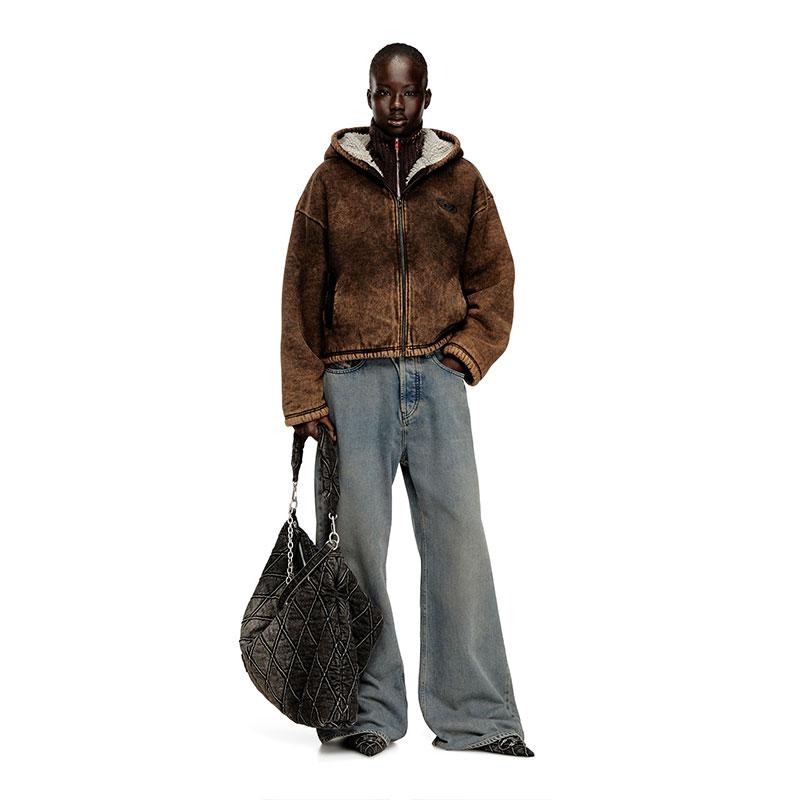 Diesel Women Acid-wash zip-up hoodie with teddy lining Brown A218520BMCB