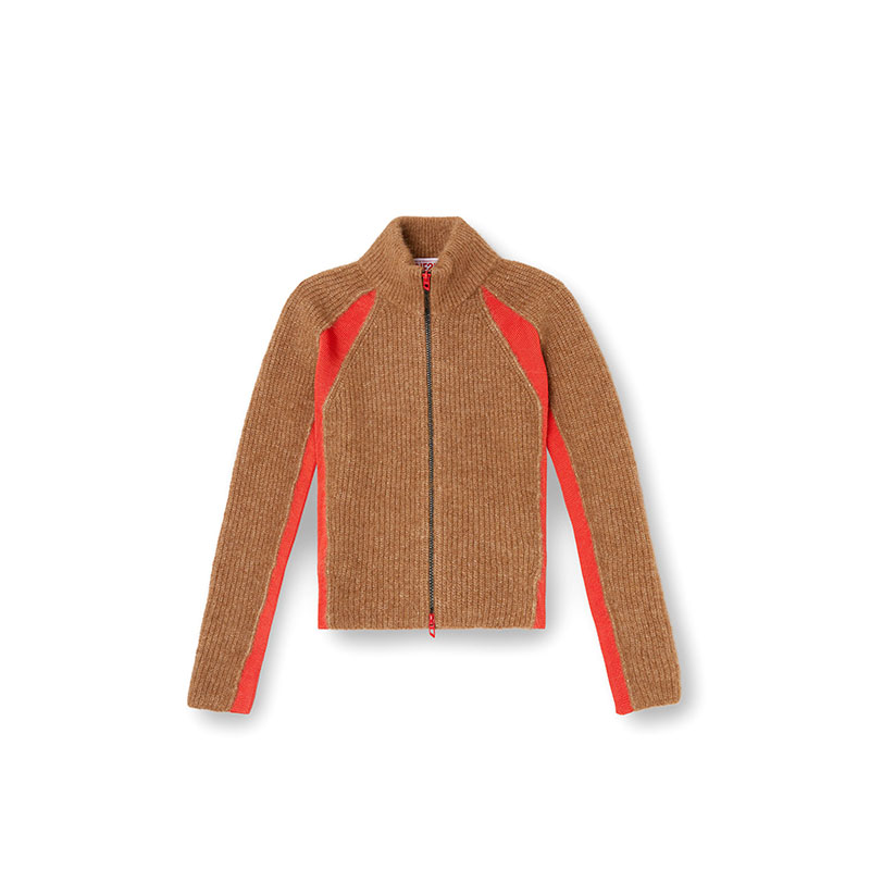 This women’s high-neck cardigan is knitted with contrasting viscose inserts that define its sporty, utilitarian feel. It’s made from a soft and fuzzy blend of responsibly sourced alpaca wool and recycled nylon and detailed with lacquered D logo pulls at the front zip fastening.