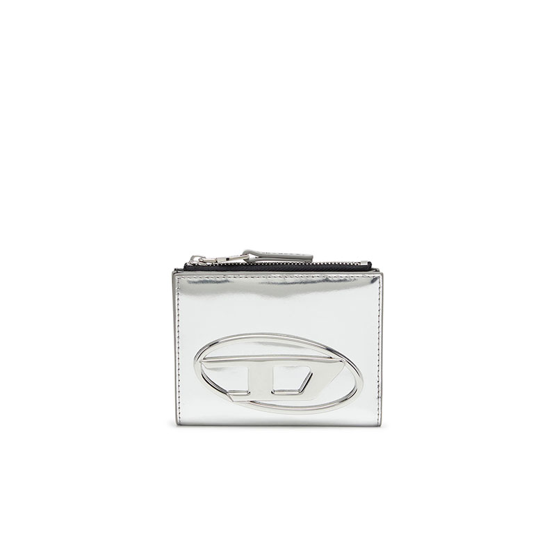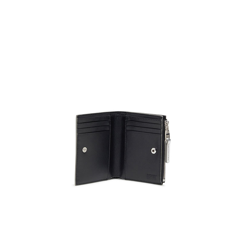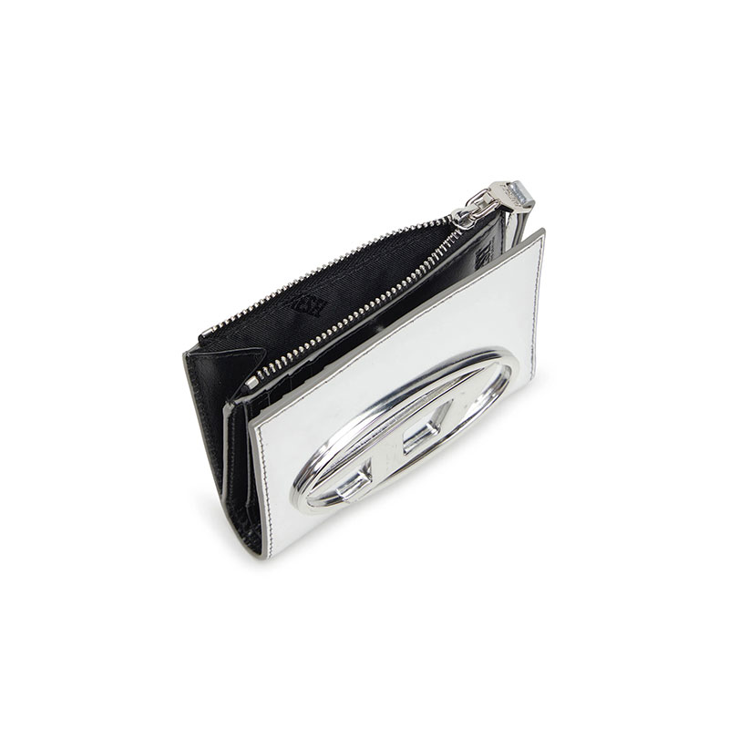 Bi-fold wallet made entirely of leather. Featuring a clean design, it stands out for the metal Oval D plaque on the front, adding an iconic element. The interior is designed to offer practicality with card compartments and a zip section for coins. The high-quality material and attention to detail make it an essential and functional accessory.