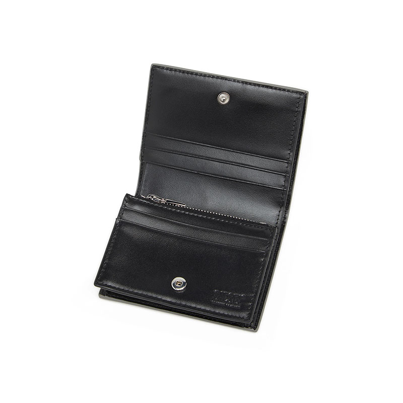 This women's compact wallet gleams with metallic shine. Crafted from responsibly sourced leather with a mirror finish, it has a snap-fastening bi-fold design equipped with a coin pocket and multiple card slots. Iconic Oval D hardware embellishes the front.
