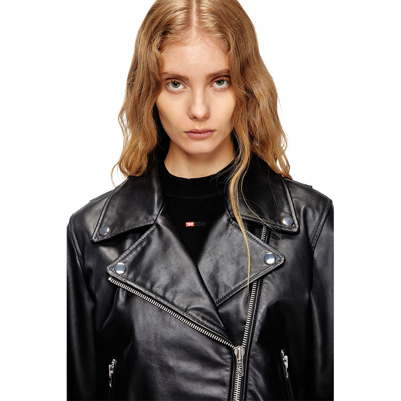 This women’s leather jacket borrows from traditional biker styles: note the asymmetric front, snap-fastened lapels and zipped cuffs. Crafted from tumbled waxed leather that’s both supple and stoic, it wears like an all-time favourite. The back hem bears a subtle nod to house codes via the embossed Oval D logo.