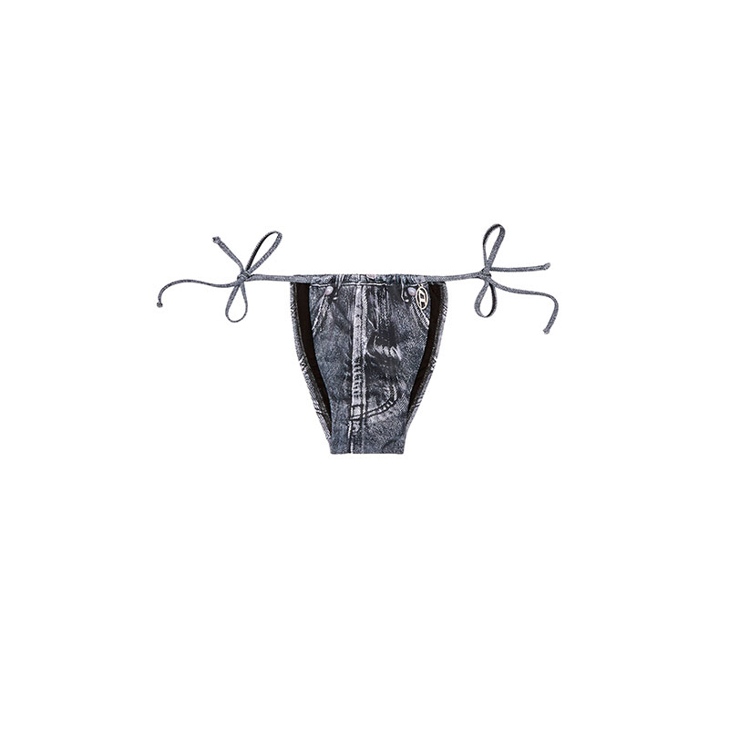 This women's bikini bottom features a cool trompe l'oeil effect: it's printed to look like a pair of jeans in a faded grey wash. Embellished with a dangling Oval D logo charm, they're made from recycled stretch fabric and have slim ties at the sides.