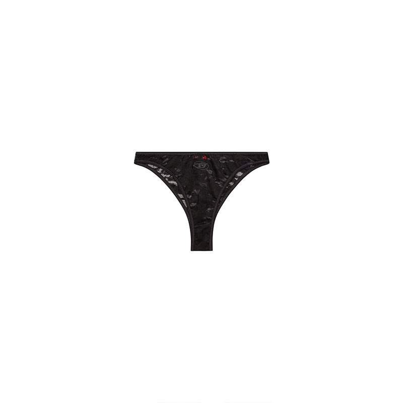 These women's sheer briefs are cut from stretchy jacquard lace with a utilitarian camouflage motif. A tonal Oval D logo is embroidered on the front.