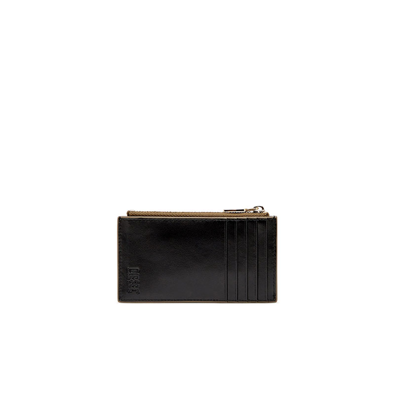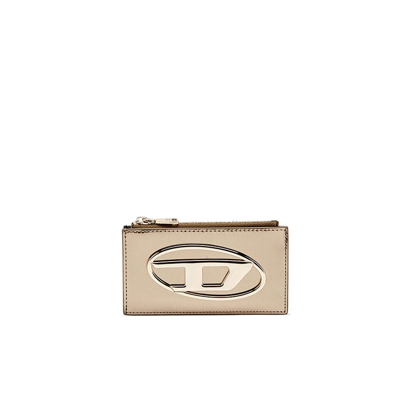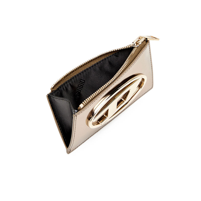 This women’s slim card wallet is crafted from responsibly sourced leather that gleams on one side with a mirror-like shine. The iconic Oval D hardware perfectly matches the striking finish. It’s fitted with external card slots and has a zipped top compartment to secure change or folded notes.