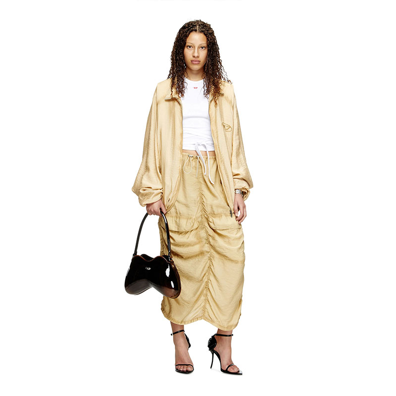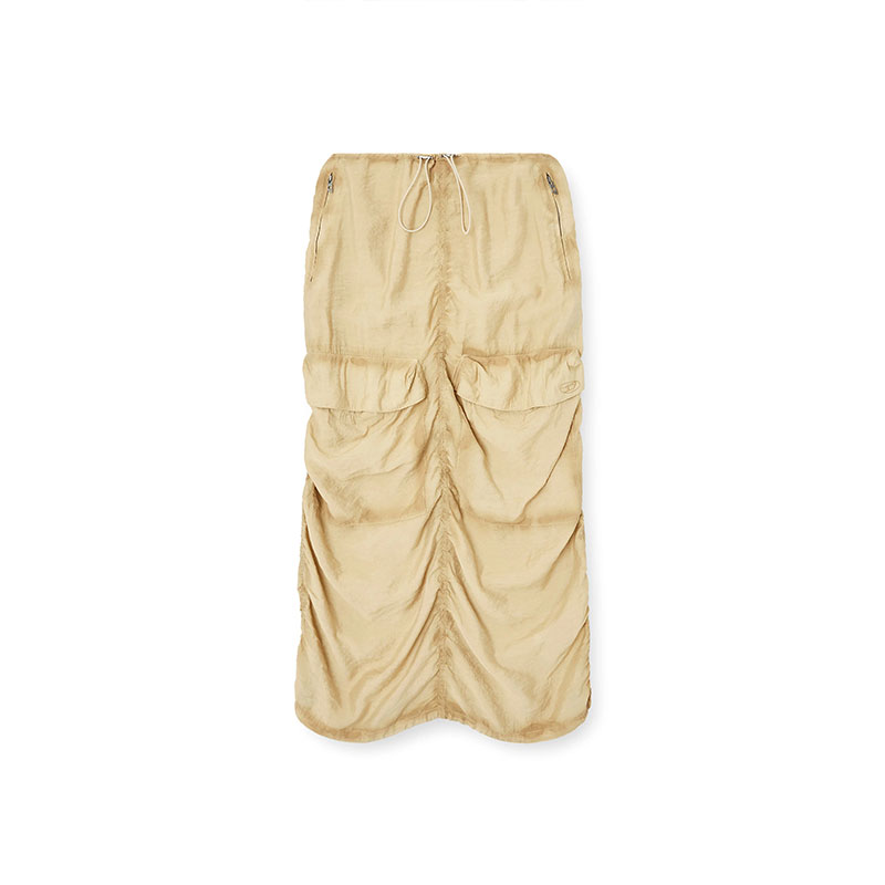 This wrinkled cargo midi skirt is made from a light and fluid blend of ECOVERO viscose and nylon, sprayed along the seams and stone-washed for a worn look. Gathered stitching and toggle-drawstrings manipulate its relaxed silhouette.