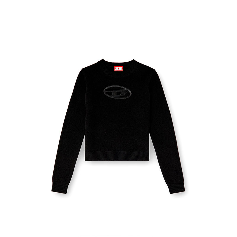 Women's crew-neck sweater spun from responsibly sourced wool and recycled cashmere. Shaped for a regular fit, this sumptuous knit showcases a large Oval D logo the front – the design employs tonal embroidery and peekaboo cut-outs, allowing for a flash of skin when worn sans an underlayer.