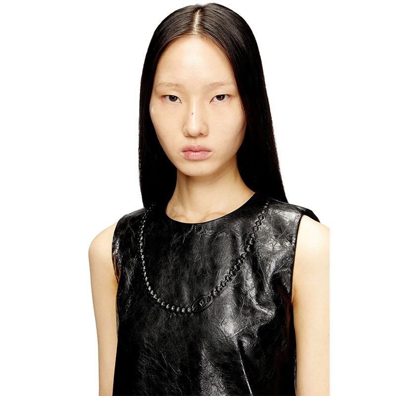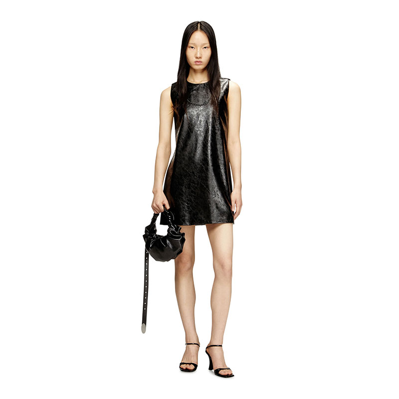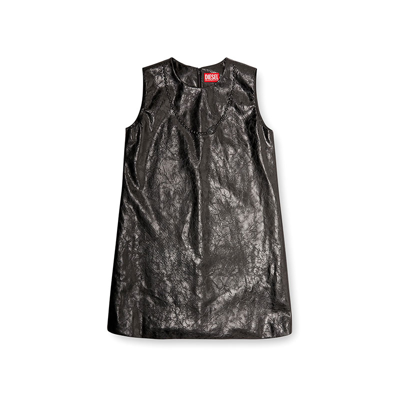 This sleeveless mini-dress is crafted from textured coated fabric for a modern look, and features a regular fit and a round neckline. Detailed with an embossed Oval D necklace on the chest, offering a subtle yet striking accent to its sleek design. The dress is finished with a hidden back center zip.