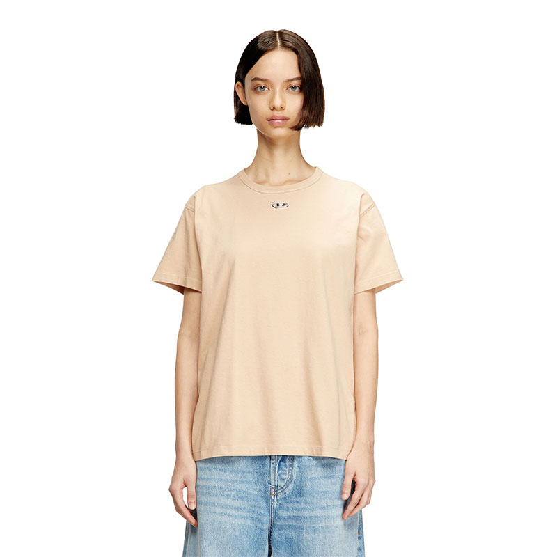 Cotton T-shirt with a crew neck and short sleeves. Cut to a regular fit, it's embellished with an injection-printed silver Oval D at the center, below the neck.
