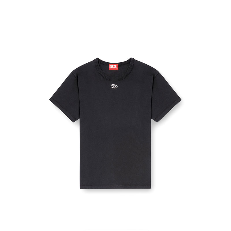 Diesel Women Cotton T-shirt with metallic Oval D Black A203990JMBB