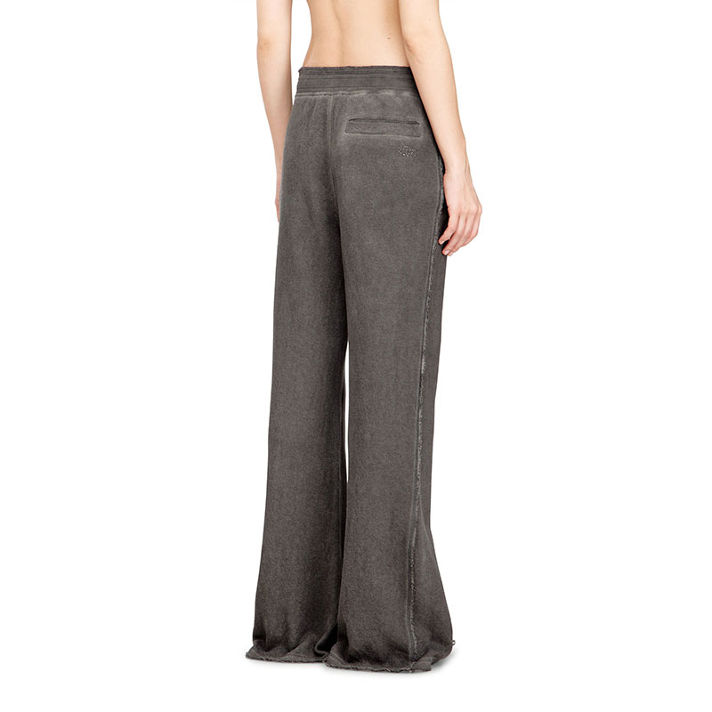 Women's regular-fit sweatpants, crafted from organic cotton fabric with a melange effect and cold pigment-dye treatment. The wide-fit style features an elastic waistband with a branded cotton drawstring, and raw-edge details along the edges. Embellished with a tonal Oval D with rhinestones on the back welt pocket, and a digital print with studs on the front for a bold touch.