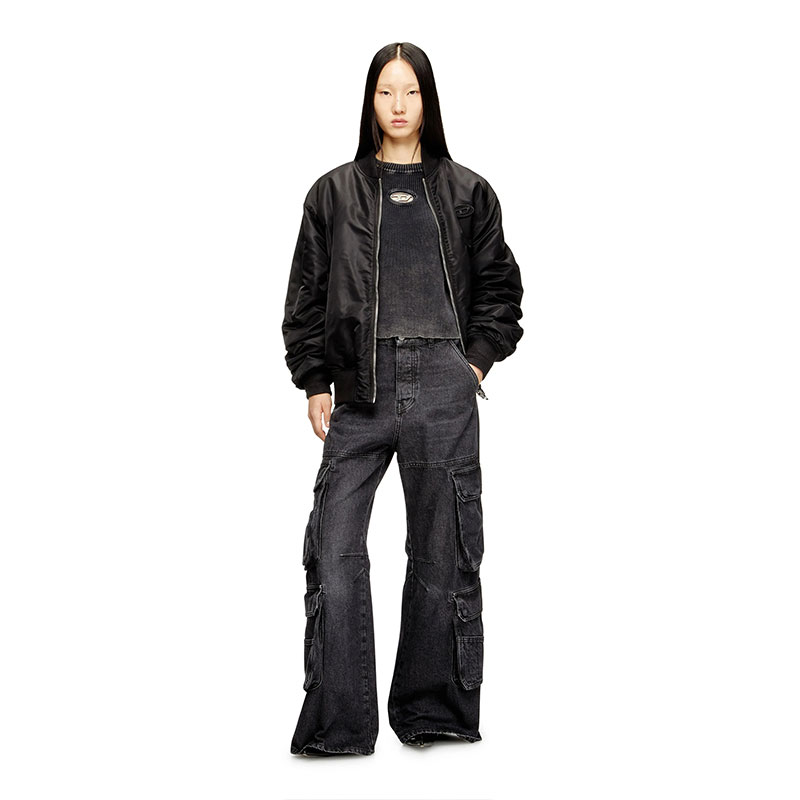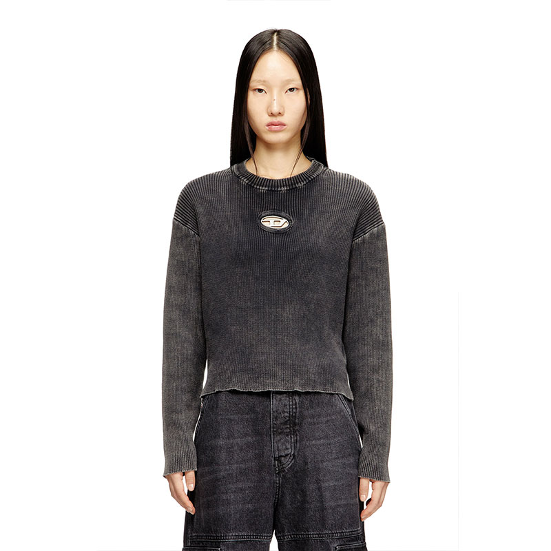 Diesel Women Cut-out ribbed jumper with Oval D plaque Dark grey A220460AKBQ
