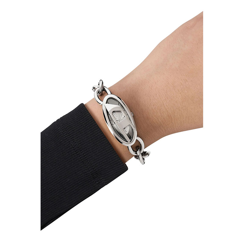 Diesel's 19mm D-Era watch features a silver polished sunray dial, two-hand movement and stainless steel bracelet.