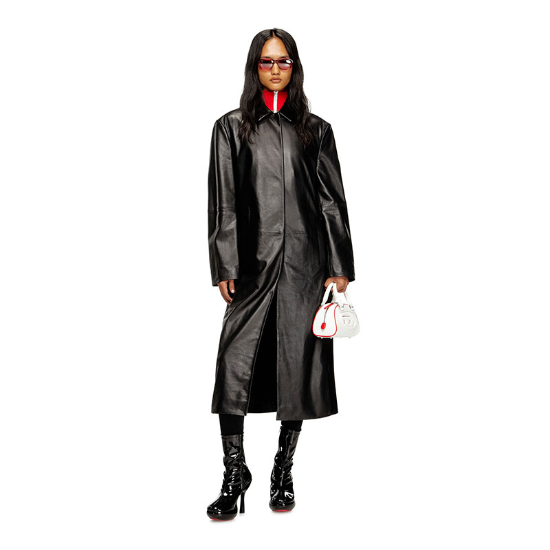 In sleek black with red accents, this women’s ankle boot showcases a cool and contemporary design through its liquid sock silhouette and unexpected materials. The zipped upper is built from soft stretch PU with an ultra-glossy patent finish and set on a lightweight and comfortable plexiglass unit – the 12cm heel feels like a less vertiginous 9cm thanks to the 3cm platform. Note the grippy, Oval D logo-embossed rubber on the bottom of the shoe.