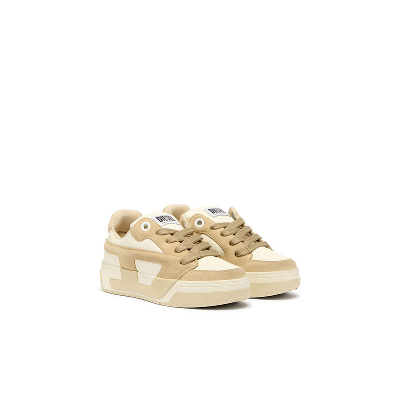 Women’s sneaker with ’90s skate DNA. Made from colour-blocked panels of leather and suede with a large padded tongue, this shoe rides on a lightweight EVA sole and hides a 2.5 cm heel lift in the footbed – chunky attitude, easy wear. A split-style D logo spans the upper and sole, unapologetically oversized. Pre-distressed, these trainers bring a lived-in edge straight out of the box.