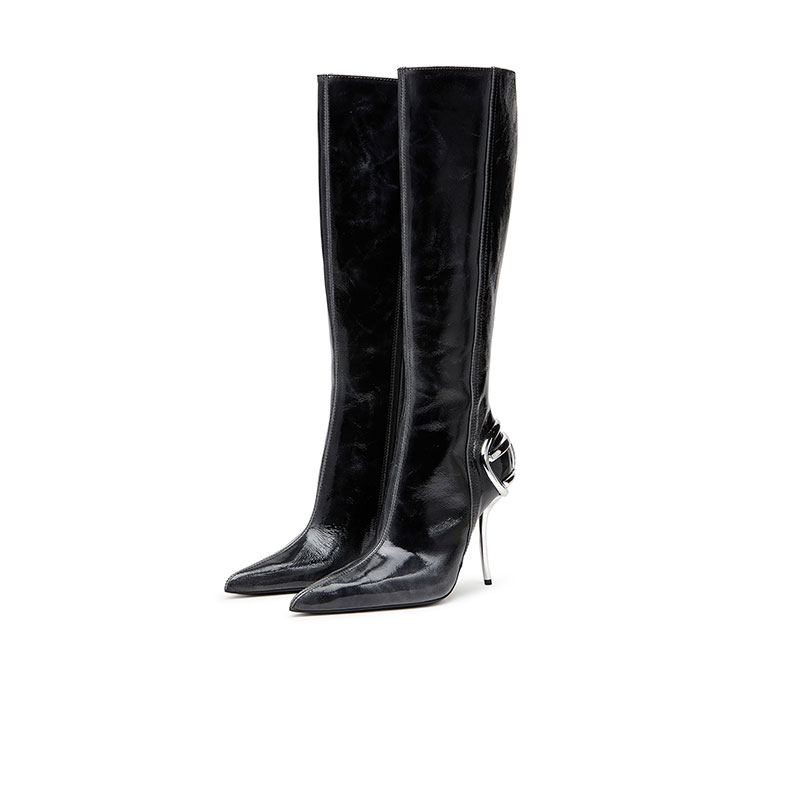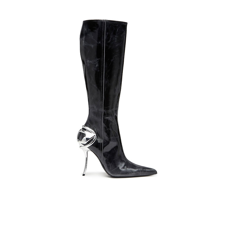 These leather boots stand out for their knee-high design and 10.5 cm heel. The leather craftsmanship enhances the tapered silhouette, while the TPU insert in the heel featuring the Oval D logo adds an innovative element.