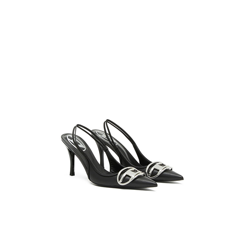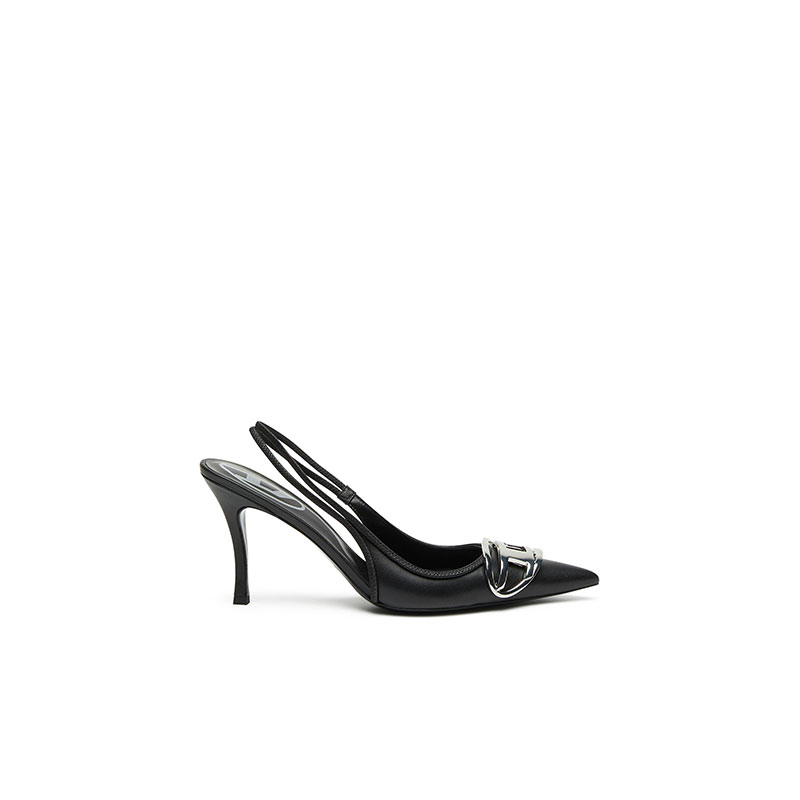 Crafted from supple nappa leather, these pumps combine a point-toe silhouette with oversized logo hardware. They have a double slingback strap and an 9 cm stiletto heel.